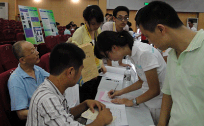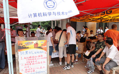 在學校統一安排下,計算機學院在東區大禮堂和西活中心廣場分別設置了迎新點。學院高度重視2010年本科迎新工作,事前召開專門會議進行研究布置。14日中午,迎新老師和誌願者同學們各就各位,領取和分裝材料,緊張有序的迎新工作拉開序幕。